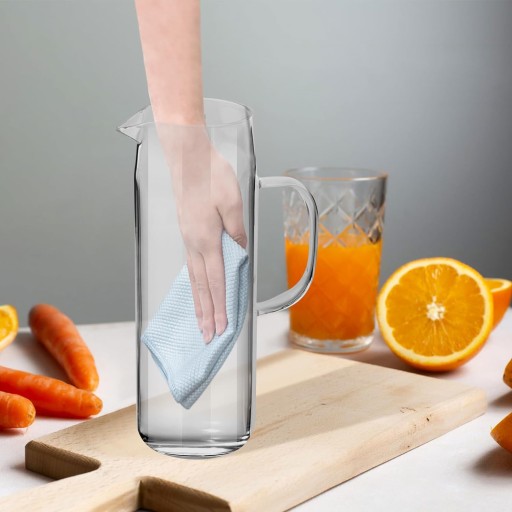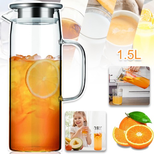 Szklane dzbanki są grubsze niż zwykłe szklane dzbanki. Wykonany z wysokiej jakości szkła borokrzemowego. Nasz szklany dzbanek może wytrzymać temperatury od -20 ° C do 130 ° C. Grube szkło ma dużą odporność na uderzenia oraz odporność na wysokie i niskie temperatury. Można go bezpiecznie używać w lodówkach i kuchenkach.