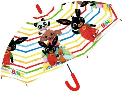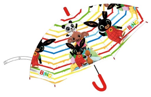 Parasolka dziewczęca Bing to wspaniały dodatek, który wywoła uśmiech na twarzy malucha nawet w deszczowy dzień. Produkt jest wytrzymały i kolorowy. Parasolka przedstawia głównych bohaterów bajki.