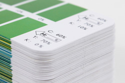 Nawet najlepiej skalibrowany sprzęt nie rozwiązuje problemu ustalenia właściwego koloru. Kolosalne znaczenie ma nie tylko sposób odbioru koloru przez ludzkie oko (czytaj więcej o teorii koloru i druku). Znaczący wpływ ma również podłoże, na którym wykonywany jest druk. Dlatego wzornik CMYK PROCESS COLOUR SCALE wykonano w wersji dla papierów powlekanych (kredowych) i niepowlekanych (offsetowych)