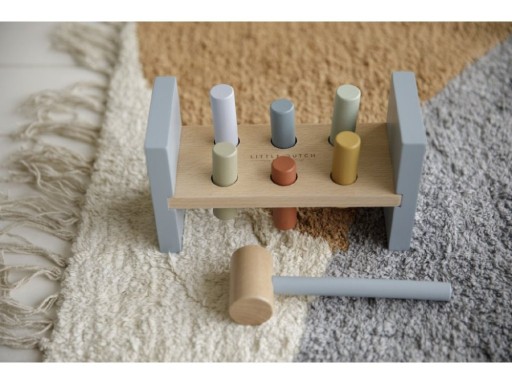 Zabawa z przebijanką od Little Dutch pozytywnie wpłynie na rozwój motoryki u dziecka, które musi wykonywać dokładne ruchy ręką, aby trafić w każdy kołeczek.