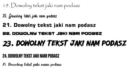 - Jeśli wybierzesz czcionkę nr. 16,17 czy 18 - wielkość liter będzie zgodna z wiadomością przy zamówieniu
