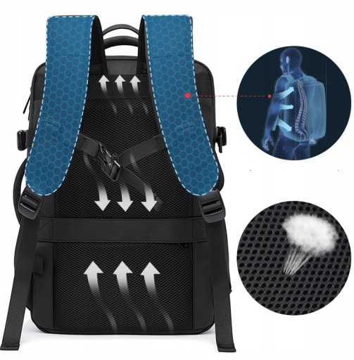 ✅ Wbudowane gniazdo USB do ładowania na zewnątrz oraz kabel USB do ładowania wewnątrz plecaka.