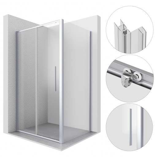 SEVANTE KABINA PRYSZNICOWA PROSTOKĄTNA NAROŻNA ROZSUWANA 90x80 CHROM 5MM