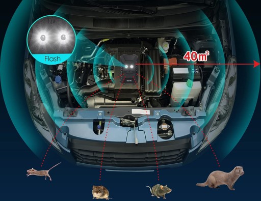 SAMOCHODOWY ODSTRASZACZ GRYZONI, KUN , SZCZURÓW , MYSZY Z LED / 5-12V