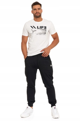 DRESY SPODNIE MĘSKIE DRESOWE Z BAWEŁNĄ CZARNE JOGGERY MORAJ R.L