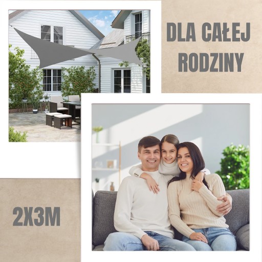 ✔️ Specyfikacja żagla przeciwsłonecznego 2x3M - Jasnoszary