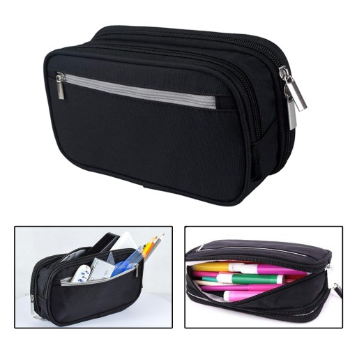Piórnik i piórnik Przenośny organizer biurowy Torba 3 przegródki Dzieci Szkoła Czarny