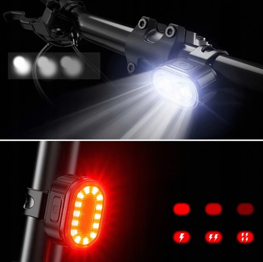 LAMPKA ROWEROWA ŚWIATŁO PRZÓD TYŁ LED NA ROWER KIEROWNICĘ MOCNA USB JASNA