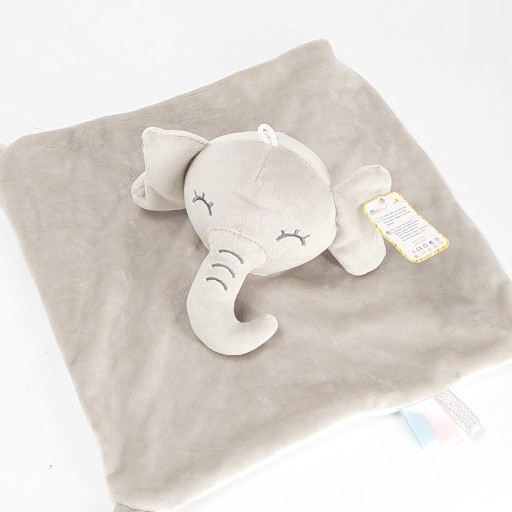 - Interesujące wzornictwo: wygodny uścisk słonia, zawiązany w czterech rogach, stymuluje zmysł dotykowy, wbudowane papierowe pętle w obu uszach, szum muzyki, wbudowane małe dzwoneczki na głowie, jasne jingi, pozwala dziecku się uspokoić.