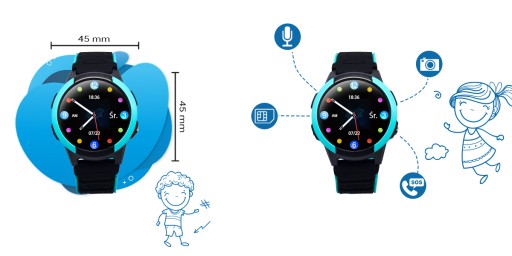 Urządzenie jest wodoodporne i dostępne w jednym z 4 kolorów, ma możliwość prowadzenia rozmów głosowych oraz lokalizowania a jego unikalną cechą jest okrągła tarcza z możliwością wyboru jednej z 5 unikalnych skórek.