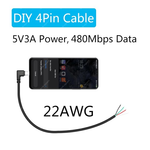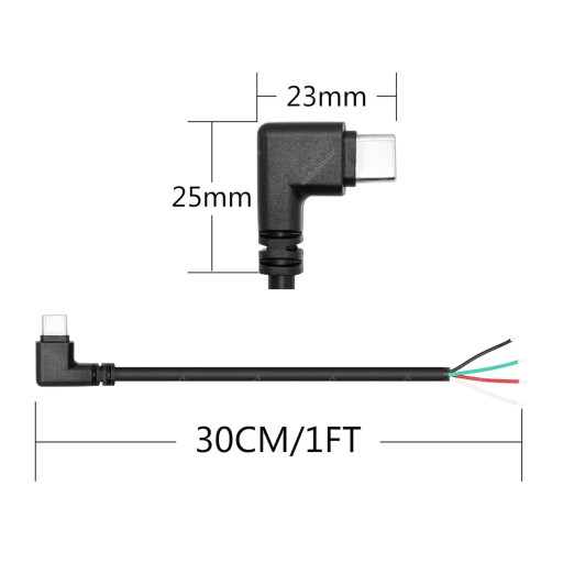 РАЗЪЕМ USB-C С 4-КОНТАКТНЫМ КАБЕЛЕМ, 30 СМ, питание + данные, 22AWG, 5 В/3 А