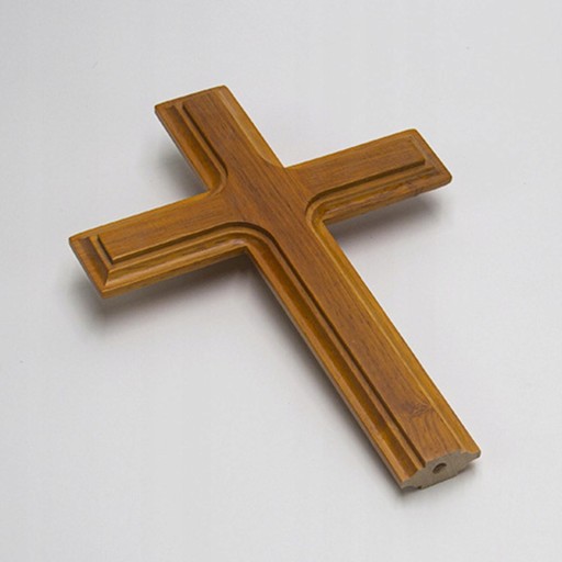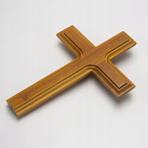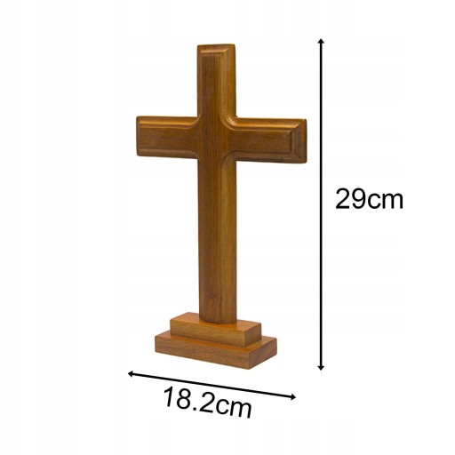 Stojący krzyż ze stojakiem: Stojący drewniany krzyż jest wyposażony wi solidny stojak Drewniany krzyż stołowy jest ładnie wyglądający, a piękne rzeźbione krawędzie wyglądu