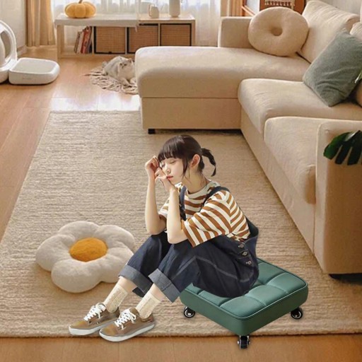 Kwadratowy niski stołek na kółkach PU Skórzane siedzisko Solidna praktyczna wysokość 12 cm Zielony
