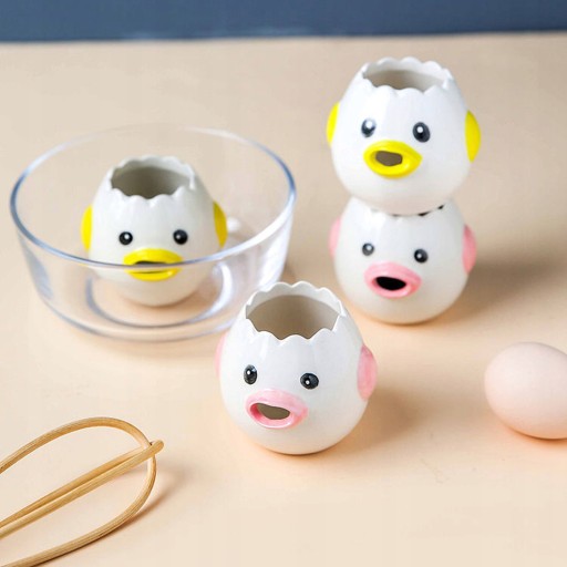 2. Wygoda: po prostu wlej jajko do ceramicznego separatora jaj i przechyl go. Białko wypłynie z ust, pozostawiając w nim żółtko, wygodne i interesujące.