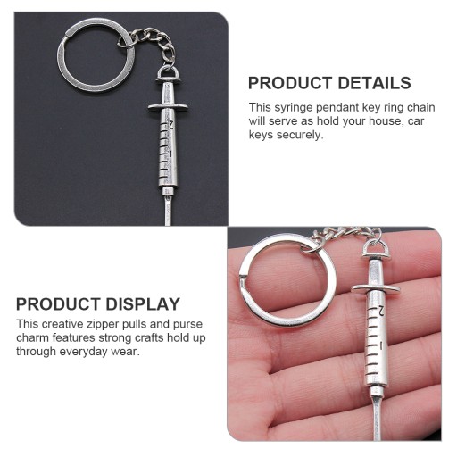 ✅This syringe pendant key ring chain will serve as hold your house, car keys securely.