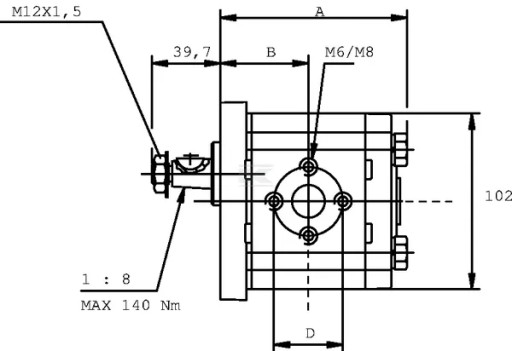 - Jeśli pompa jest wyposażone w koło zębate lub pasowe, należy użyć łożyska podporowego np. Nr zamówienia T222