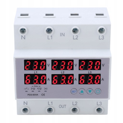 Typ artykułu: 3-fazowy woltomierz na szynę DIN