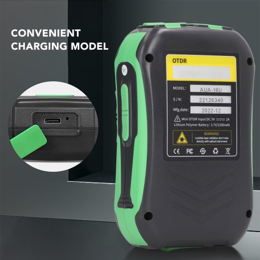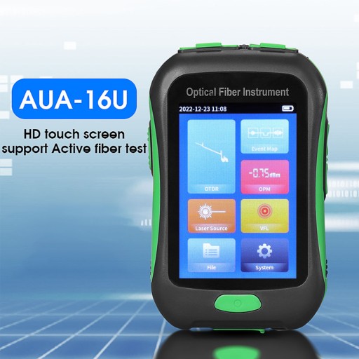 - Sześć funkcji: optyczny reflektometr w dziedzinie czasu, miernik mocy optycznej, stabilne źródło światła, wizualna lokalizacja uszkodzeń, światło LED, mapa zdarzeń