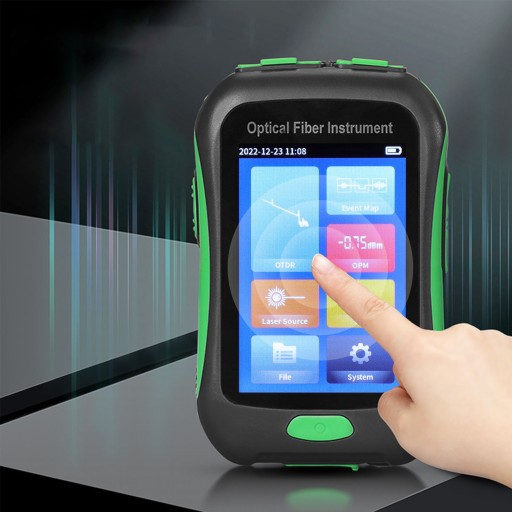 1. EKRAN 3,5 cala: Miernik mocy optycznej ma dotykowy kolorowy wyświetlacz, jest łatwy w obsłudze, przejrzysty i bardzo praktyczny.