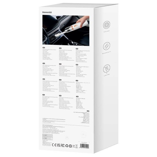 Bezprzewodowy odkurzacz samochodowy Baseus został wyposażony w silnik, który pracuje z częstotliwością 50 000 rpm i nie generuje zbyt wiele hałasu (65 dB). Ponadto siła ssania 6000 Pa pozwala dokładnie usunąć zarówno większe, jak i mniejsze zanieczyszczenia.