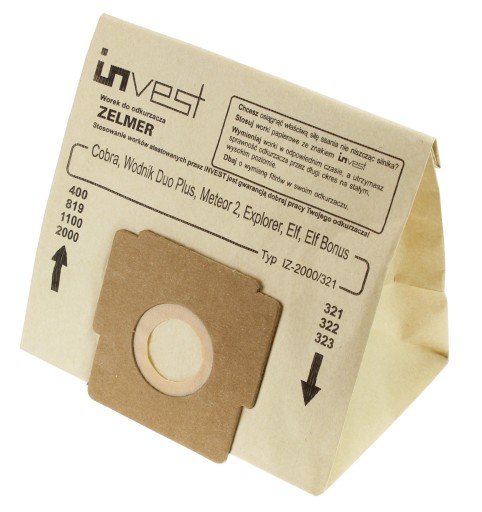 10 мешков для пылесоса ZELMER ELF ELF 2 ELF 3 BONUS METEOR 2 ODYSSEY COBRA