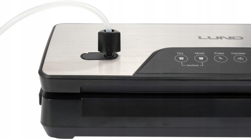 Uniwersalna i niezawodna pakowarka próżniowa LUND o mocy 130W i maksymalnej szerokości zgrzewania worka aż 30cm. We wnętrzu możliwe jest przechowywanie oraz cięcie nożykiem rolki folii, dzięki czemu mamy ją zawsze pod ręką oraz możemy dostosować jej długość do pakowanych produktów. Urządzenie umożliwia wybranie funkcji odsysania w zależności od rodzaju żywności. Dołączony do zestawu wężyk umożliwia również odsysanie powietrza ze specjalnych pojemników próżniowych.