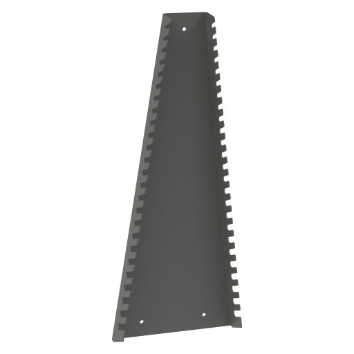 Uniwersalny i trwały wieszak na klucze lub inne urządzenia warsztatowe. Wykonany jest z blachy o grubości 2 mm oraz malowany proszkowo na kolor grafit RAL 7016. Wieszak posiada otwory montażowe, dzięki którym można go zawiesić na ścianie w dowolnym miejscu, tak aby był on zawsze dostępny. Wieszak posiada 25 uchwytów na klucze różnej wielkości, jest solidny i mocny.