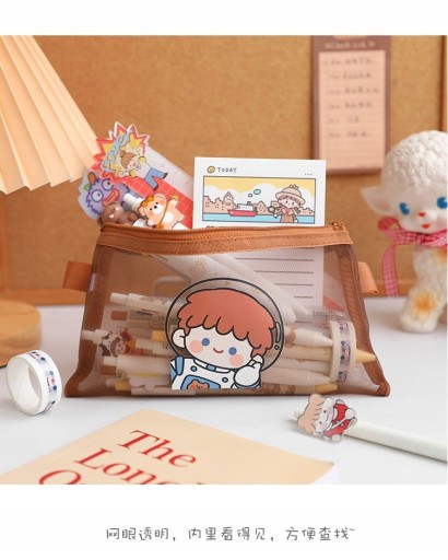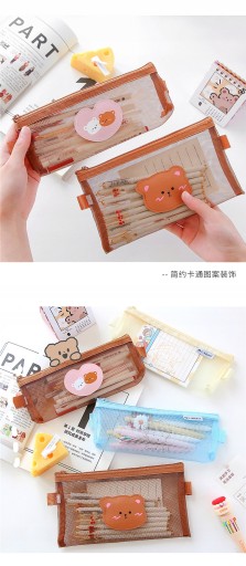 Прозрачный сетчатый пенал с милым плюшевым мишкой
