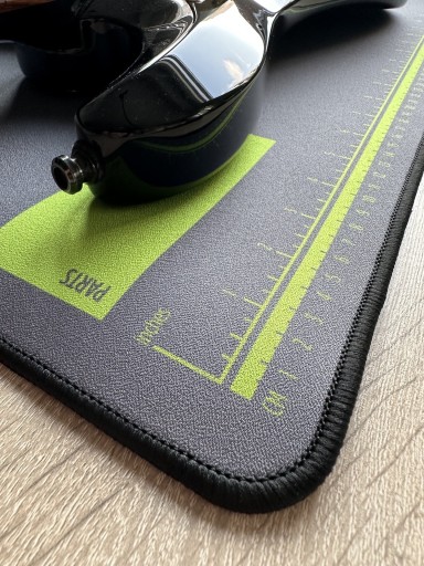 Mata serwisowa Ernie Ball TechMat została wykonana z wytrzymałego tworzywa z gumową, anty-poślizgową powierzchnią z miękkim podkadem dzięki czemu dobrze chroni instrument przed obiciem czy zarysowaniem o twarde powierzchnie. Duży format maty gwarantuje, że pasuje ona do większości gitar i basów. Mata posiada grafikę z linijką metryczną i calową.