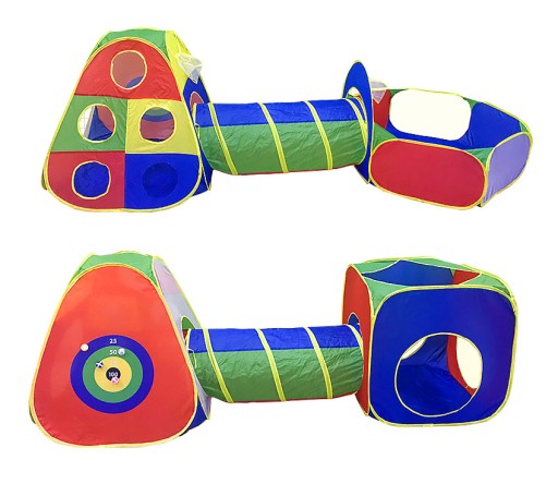 Taki zestaw to znacznie więcej niż tylko namioty. To interaktywna przestrzeń, w której dzieci mogą wymyślać kreatywne zabawy. Od schronienia i czołgania się po tunelach po rywalizację w strzelaniu do tarczy czy zbieraniu piłeczek.