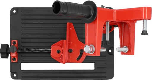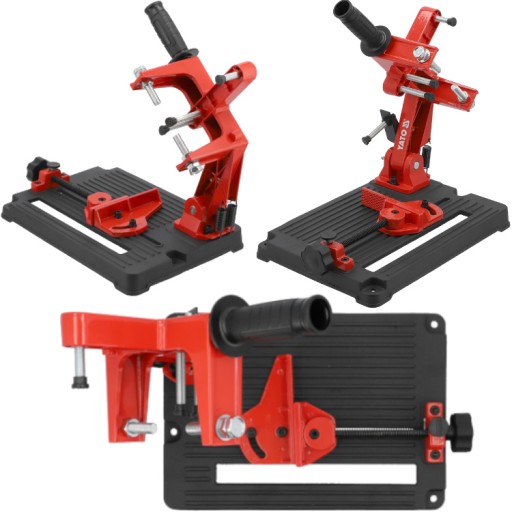 Uniwersalny statyw do pracy ze szlifierką kątową. Stabilna podstawa, wykonana ze staliwa, zintegrowana jest z mocnym imadłem szybkomocującym. Profile nośne o dużym przekroju i podwójna sprężyna powrotna umożliwiają pracę szlifierką o znacznej wadze. Poziomy kąt cięcia ustawiany jest precyzyjnie dzięki pokrętłom.