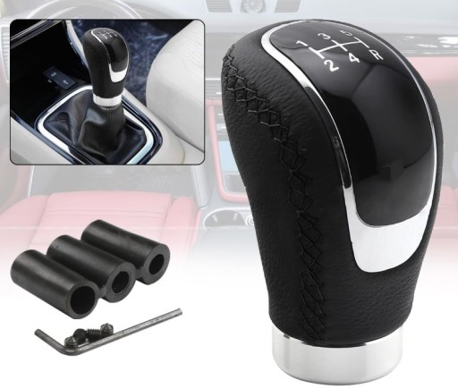 - Gałka została zaprojektowana z myślą o szerokiej gamie pojazdów, dzięki czemu jest uniwersalna i łatwa w montażu. W zestawie znajdują się trzy wymienne nakładki pozwalające na zmianę liczby biegów pomiędzy 5 a 6, co sprawia, że produkt jest dostosowany do różnych modeli samochodów.