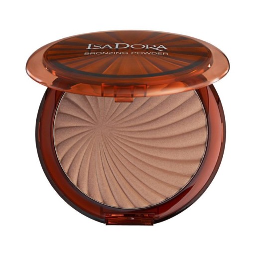 Puder brązujący marki IsaDora nadaje świeżego, słonecznego blasku skórze . Jest to pół transparentny produkt nadający się do nakładania na twarz jak i na ramiona oraz dekolt. Znajduje się w pięknym opakowaniu z dużym lusterkiem i aplikatorem , który nada się do mycia. Idealnie dobranydo wszystkich rodzajów skóry . Niezrównany puder brązujący, dzięki specjalnej technologii odbija światło i podkreśla efekt słonecznego blasku w makijażu . Możliwość manipulowania kolorem wspaniale sprawdza się przy konturowaniu jaki przy uzyskaniu efektu naturalnej opalenizny. Bogaty w witaminy C i E , nieperfumowany, przebadany klinicznie.