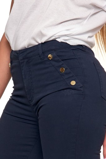 Podkreśl swoją sylwetkę i dodaj odrobinę elegancji do swojej garderoby dzięki naszym elastycznym spodniom skinny damskim z wysokim stanem i ozdobnymi złotymi guzikami. Te spodnie zostały wykonane z wysokiej jakości bawełny z domieszką elastanu, co zapewnia doskonałe dopasowanie i wygodę przez cały dzień. Wysoki stan modeluje sylwetkę i zapewnia komfort, a elastyczna tkanina umożliwia swobodę ruchów. Spodnie zapinane są na zamek, a przód zdobią stylowe, złote guziki, które dodają elegancji. Imitacje kieszeni z przodu tworzą efekt schludnego i gładkiego wyglądu, bez dodatkowego obciążenia. Niezależnie od tego, czy zestawisz je z casualowym T-shirtem, czy elegancką bluzką, nasze elastyczne spodnie skinny z wysokim stanem i ozdobnymi guzikami zawsze będą wyglądać świetnie.