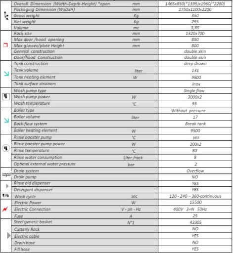 - Teoretyczna wydajność zmywarki: 30 koszy/godzinę.