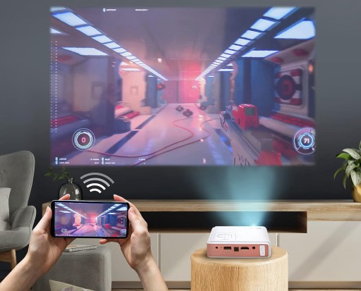 Projektor Beam J2 obsługuje HDMI, USB, Airplay, Miracast i DLNA. Kompatybilny ze smartfonami iOS i Android, tabletami, TV Stick, PS5, X-Box, Switchem, Laptopem Należy pamiętać, że ten projektor nie nadaje się do użytku biurowego, ponieważ wymagana jest wyższa rozdzielczość dla raportów projektów i arkuszy kalkulacyjnych.