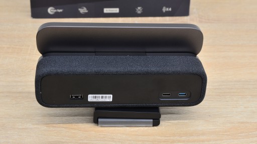 Uporządkuj obszar swojego miejsca pracy, łącząc kamerę, głośnik, mikrofon i światło w jedną kamerę obsługującą sztuczną inteligencję do monitora komputera i wykorzystaj dodatkową przestrzeń. Aby zapewnić bezproblemową pracę, pamiętaj o podłączeniu kabli danych i zasilania do właściwych portów.
