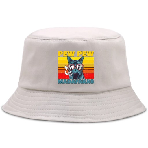 Pew Pew Madafakas czarny kot czapki typu Bucket kobiety Street kapelusz przeciwsłoneczny na plażę Hip Hop Casual kapelusze rybackie mężczyźni lato na zewnątrz czapka typu Panama