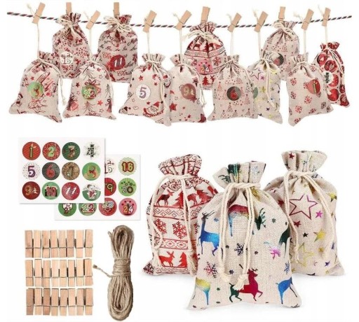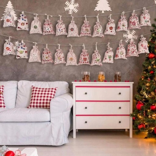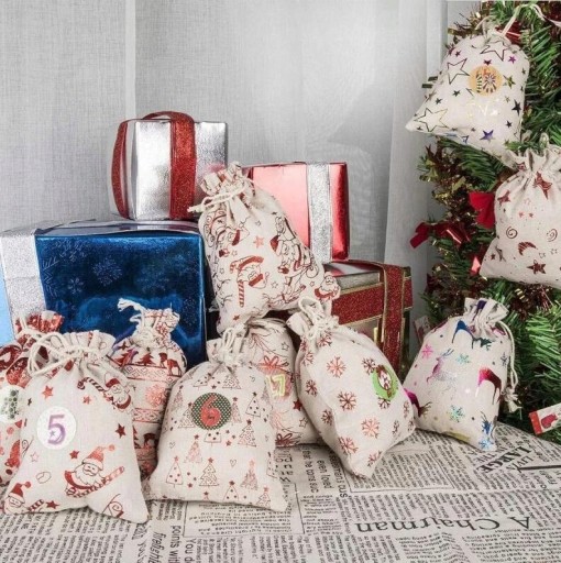 Świąteczny kalendarz odliczania: świąteczna torba na prezent z kalendarzem adwentowym to świetny sposób, aby pomóc Tobie i Twoim dzieciom odliczać dni do Bożego Narodzenia. Ludzie otwierają torbę każdego dnia podczas adwentu i znajdują w każdym prezent do 24.