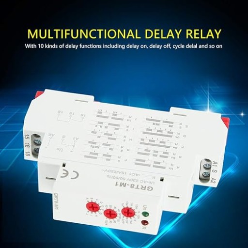 Wielofunkcyjny przekaźnik czasowy może być stosowany do urządzeń elektrycznych, sterowania oświetleniem, ogrzewaniem, silnikami, pompami i wentylatorami (10 funkcji, 10 zakresów czasowych, wielonapięciowe).