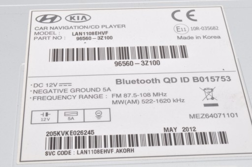 HYUNDAI I40 РАДИОНАВИГАЦИОННАЯ 96560-3Z100