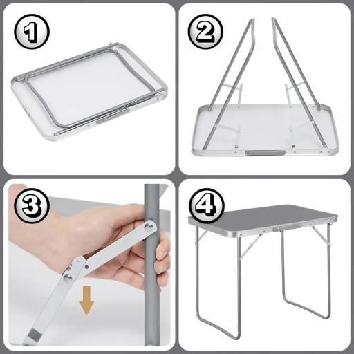 Praktyczny stolik turystyczny składany oferuje łatwość i szybkość montażu. Po złożeniu przyjmuje formę wygodnej walizki z rączką, co sprawia, że zajmuje niewiele miejsca i jest niezwykle łatwy do transportu. To idealne rozwiązanie dla wszystkich podróżujących. Za pomocą tego stolika turystycznego składanego możesz błyskawicznie przygotować miejsce do spożywania posiłków czy relaksu, bez zbędnych trudności. Po skończonym użytkowaniu, złożony stolik zamienia się w kompaktową walizkę, gotową do zabrania w podróż.