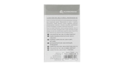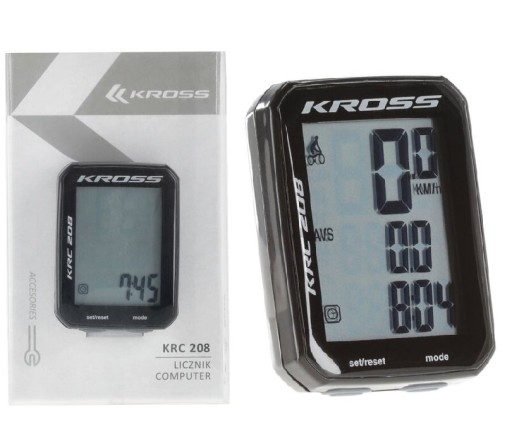 Licznik Kross KRC 208 to akcesorium przydatne podczas krótszych i dłuższych wypraw rowerowych. Przedstawia 8 podstawowych wskazań pozwalających kontrolować zaplanowaną trasę. Posiada dwie funkcje czasu: zegar, do wyboru w trybie dwunasto- lub dwudziestoczterogodzinnym oraz licznik czasu jazdy. Licznik Kross KRC 208 mierzy dystans całkowity i dzienny, prędkość aktualną oraz maksymalną, a także średnią prędkość użytkownika.
