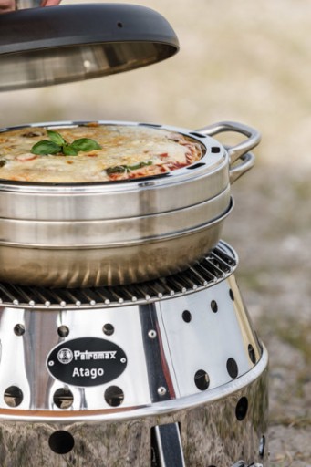 - Trzy elementy: podstawa, forma pierścieniowa z uchwytami i pokrywka - Kompletny piekarnik do użytku kempingowego - Trzyczęściowy kształt zapewnia optymalne ciepło od góry i od dołu, a także boczne dopływ ciepła