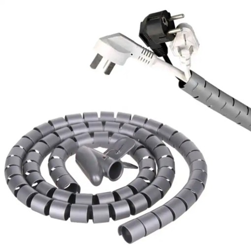 Elastyczna maskownica do kabli o długości aż 2 metrów. Wyposażony w solidne zapięcie na klips, które skutecznie zabezpiecza przewody elektryczne po zwinięciu maskownicy. Doskonale sprawdzi się w obrębie szafek RTV i sprzętu biurowego, porządkując zwoje przewodów. Solidny materiał jest odporny na uszkodzenia, a perforowana konstrukcja ułatwia przycięcie maskownicy w dowolnym miejscu.