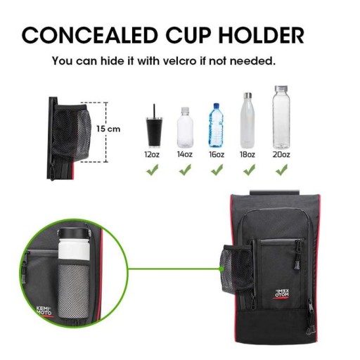 4. Ukryty uchwyt na kubek, można go wyjąć, gdy trzeba trzymać butelkę z wodą i schować go do torby z zamkiem błyskawicznym, jeśli nie jest potrzebny, dzięki czemu torba będzie wyglądać schludnie.
