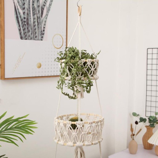 The macrame hanging basket will elevate your space with an artistic atmosphere and setting Perfect boho wall baskets for organizing and storage