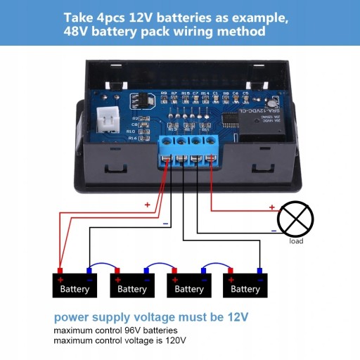 Gdy napięcie akumulatora wzrośnie do ustawionej wartości, moduł automatycznie ponownie włączy obciążenie.