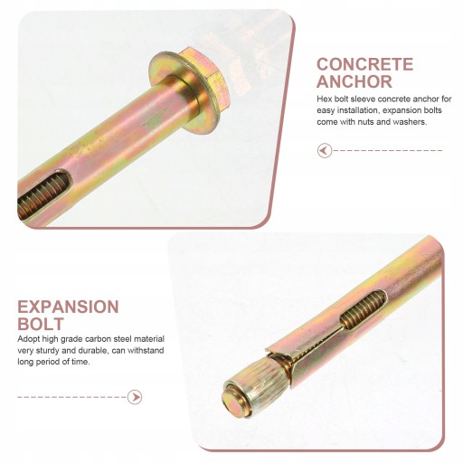 Kotwa do betonu z tuleją ze śrubą sześciokątną dla łatwego montażu, śruby rozporowe są dostarczane z nakrętkami i podkładkami.