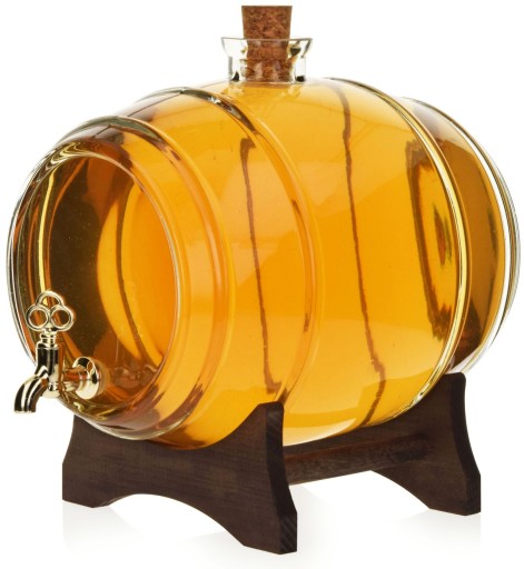 Przepiękna bezbarwna beczka z kranikiem o pojemności 5L na nalewki, bimber lub inne alkohole